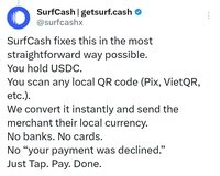 入札価格は380万fdvで$SURF。 この発売をずっと待っていました なぜでしょうか。 他のネオバンクとは異なり、$SURFはベトナム、フィリピン、ブラジル、タイ、インドネシアなど、暗号通貨の導入が最も速い国々のローカルQR決済レールをターゲットにしています ca: SurfwRjQQFV6P7JdhxSptf4CjWU8sb88rUiaLCystar