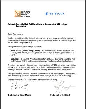 Genom detta samarbete kommer GetBlock och BanxChange att samordna sina insatser för att stärka XRP Leggers kapacitet för storskalig artikelpublicering, stödja ett växande inflöde av journalister och säkerställa effektiva BXE-tokenbaserade belöningar för innehållsskapare.